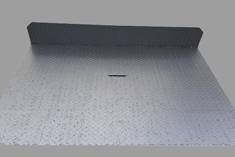 Materiaal staal Breedte 2,00 mtr. lengte 1,50 mtr. Inclusief scharnierbare klep 15 cm Draagvermogen 7.500 kg. 190 mm. hoogte Voorzien van anti-slip tranenplaat. Transportbeugel voor het verplaatsen met een heftruck. Eigen gewicht ca. 150 kg. Standaard in zwart gespoten
