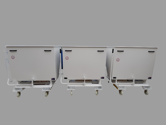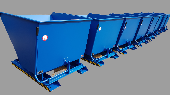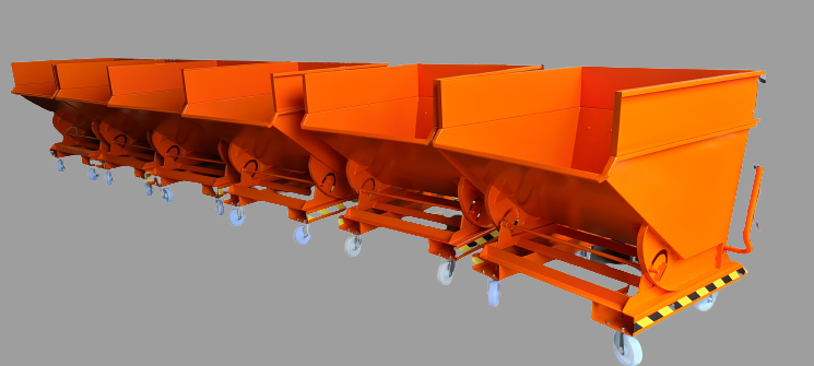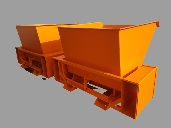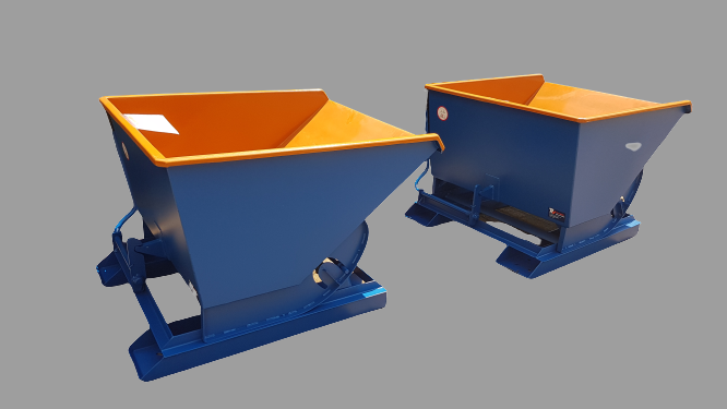 Sterke stabiele heftruck stortbakken van 3mm staalplaat. Eenvoudige bediening met een automatische vergrendeling. Voorzien van een vorkinsteek met borging. Standaard zonder wielen. Leverbaar in onderstaande inhoudsmaten. Afwijkende modellen op aanvraag.