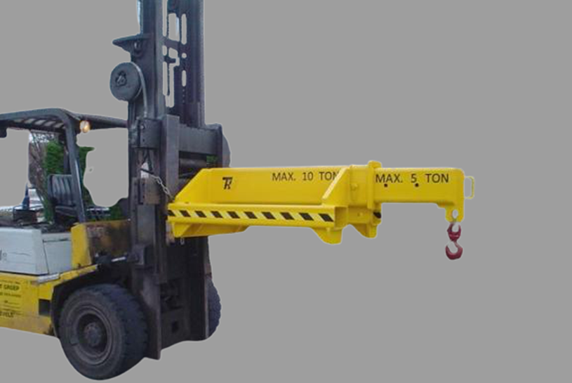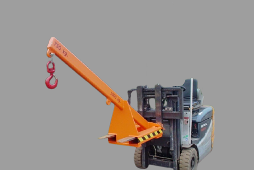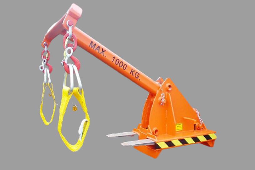 Supersterke en multi verstelbare heftruck—kraanarm gecertificeerd Met vorkinsteek, borgketting en borgknevel, D-sluiting en wartelhaak Kraanarm in 10 posities uitschuifbaar van 2165mm tot 3740mm Verstelbaar in 4 standen: horizontal, 20˚ - 30˚ en 50˚