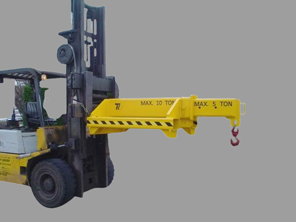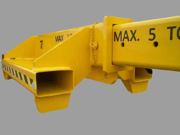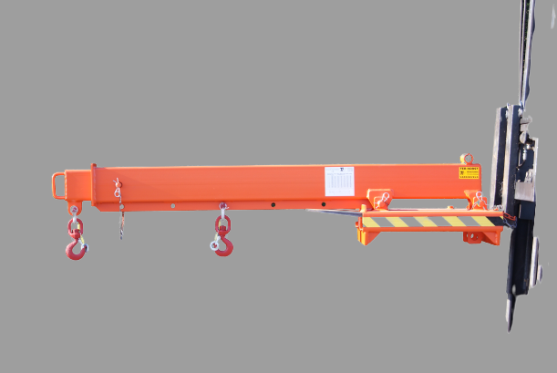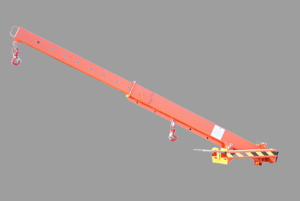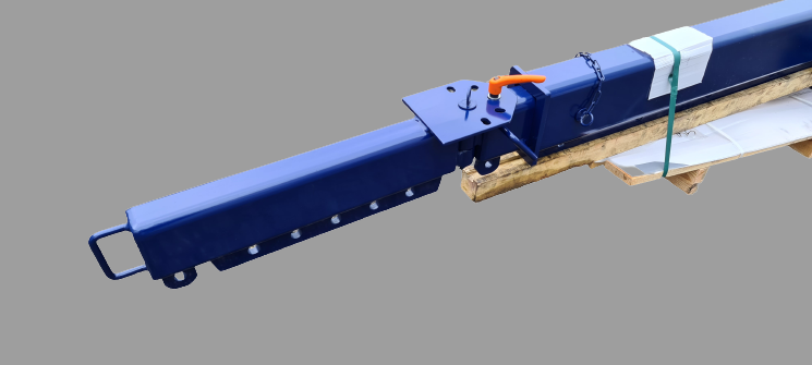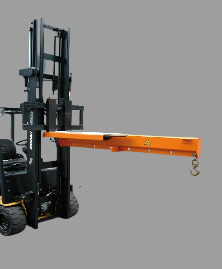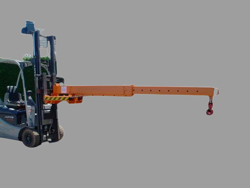 Supersterke en multi verstelbare heftruck—kraanarm gecertificeerd Met vorkinsteek, borgketting en borgknevel, D-sluiting en wartelhaak Kraanarm in 10 posities uitschuifbaar van 2165mm tot 3740mm Verstelbaar in 4 standen: horizontal, 20˚ - 30˚ en 50˚